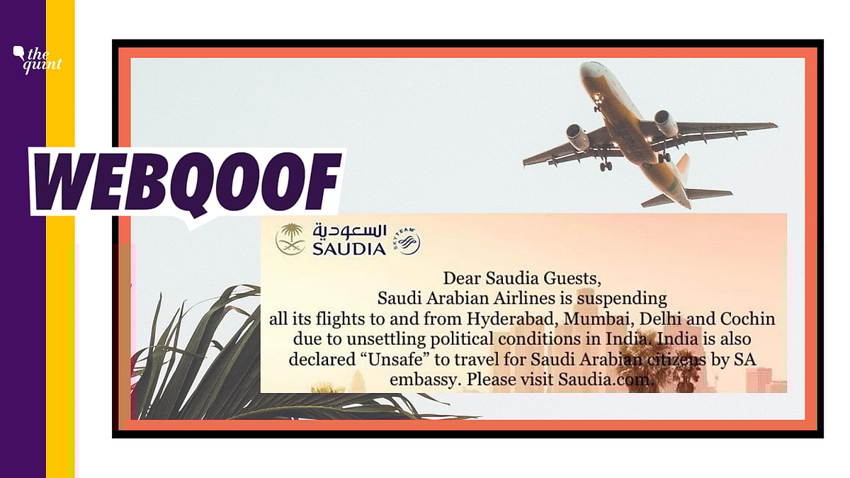 Fact Check Did Saudi Arabian Airlines Suspend All Its Flight To India Due To Caa Protest False